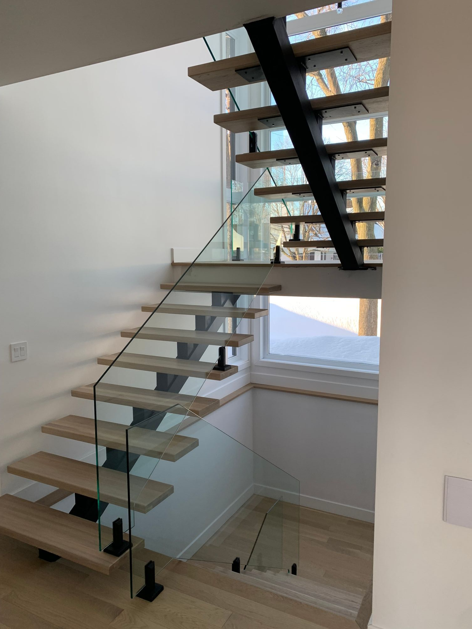 Installation de rampes en verre sécuritaires et élégantes pour intérieur ou extérieur, offrant luminosité, modernité et conformité aux normes de sécurité.